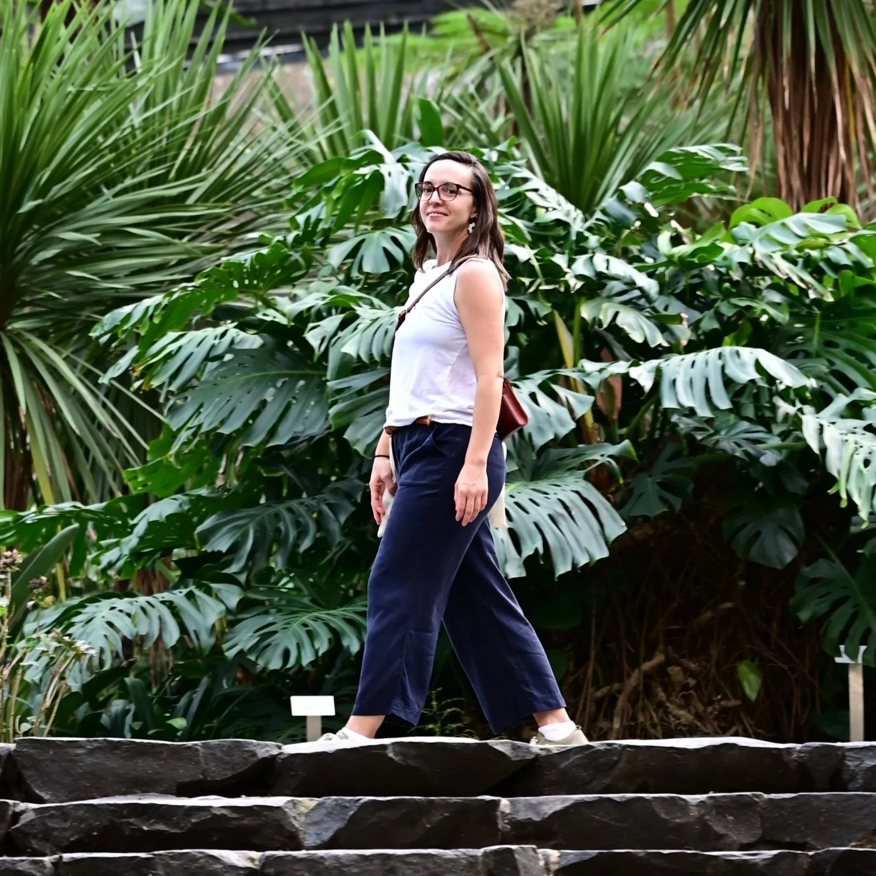 She enjoys designing creative flows and playlists that offer that same sense of calm and escape. She aims to offer a space for students to explore new movements, find a challenge when looking for it, and leave class feeling grounded.